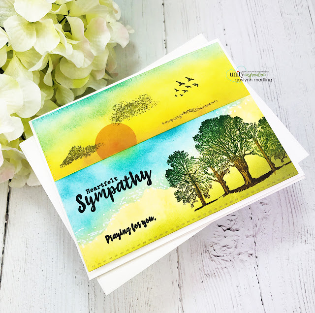 Hello. For Technique Time at Unity, I am sharing a one layer card with a beach theme and with sympathy sentiments. I show techniques for masking and ink blending.