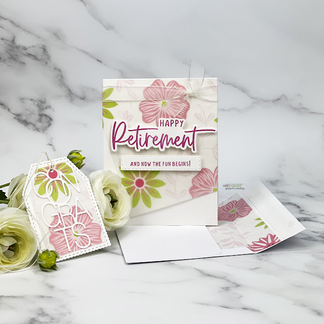 Here are the steps to easily use scrap paper 3 ways from 12x12 paper pads and more. To begin, prepare an A2 sized card base in white. Mine is a top fold base. Then, trim a piece of patterned paper to fit at a diagonal on your card base. Next, from the same paper sheet, trim a rectangle to fit inside of an A2 sized envelope. Also, score a fold line just under the envelope adhesive to the envelope fold line. Cuts and scoring will depend on your envelope measurements and folds. Then, using the same sheet, die-cut or trim a layered gift tag. Lastly, add sentiments to the tag and the card using what you have, including optional stamping, ephemera, Cricut cuts, embellishments & more. Finally, adhere and layer it all, to finish.